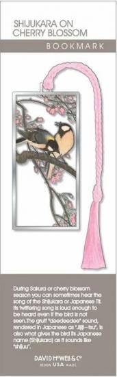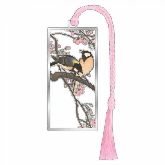 啼き声が聞こえてきそうな生き生きとした鳥の姿と、さくらの繊細な色使いを再現したようなブックマークです。